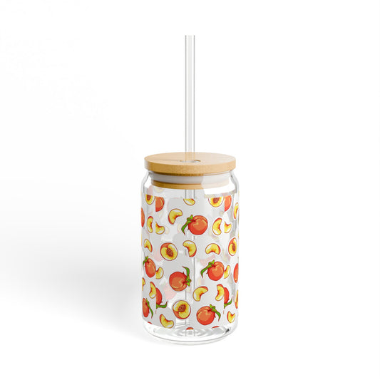 Peach Pattern 16oz Sipper Glass with Bamboo Lid & Straw — Reusable Fruit Drink Tumbler