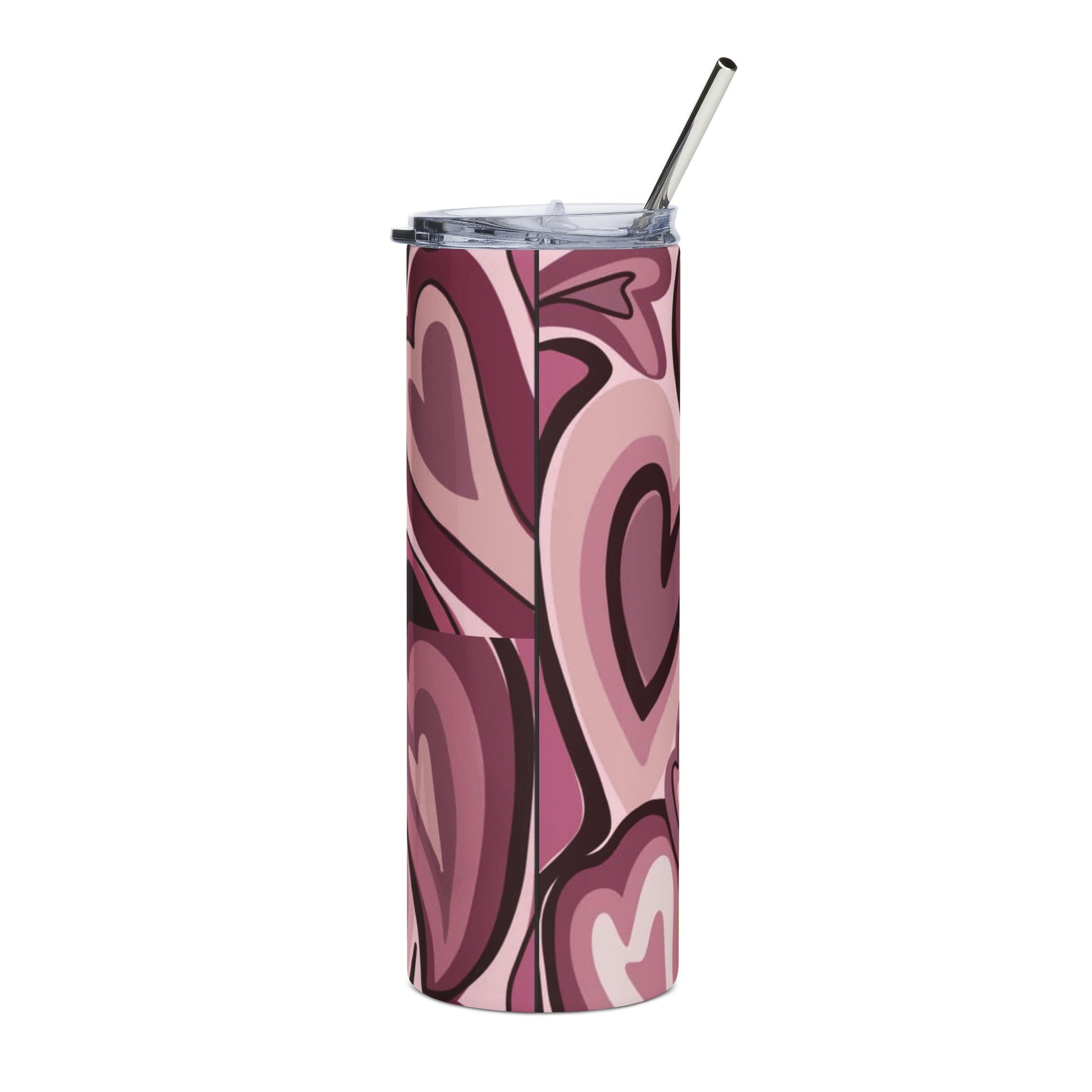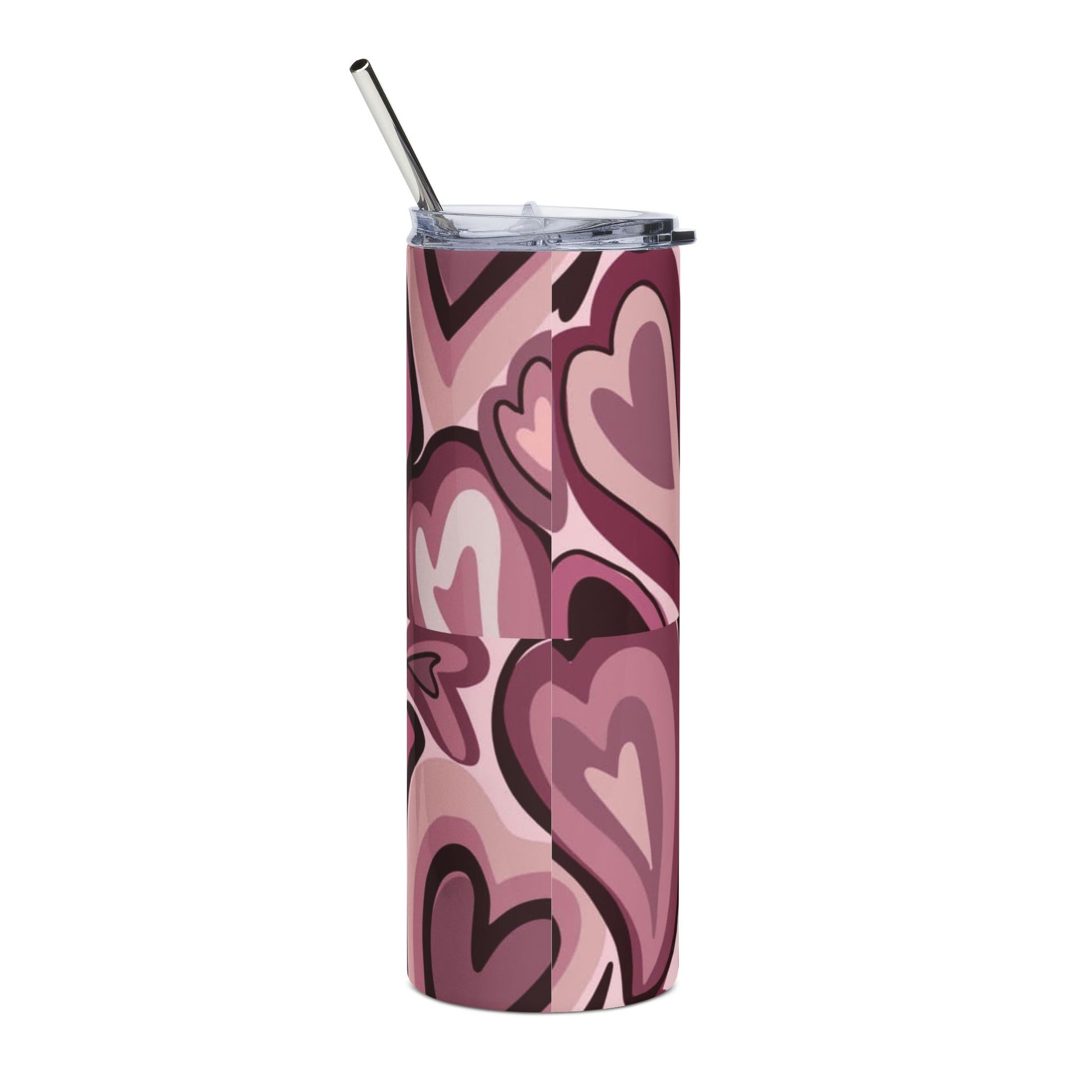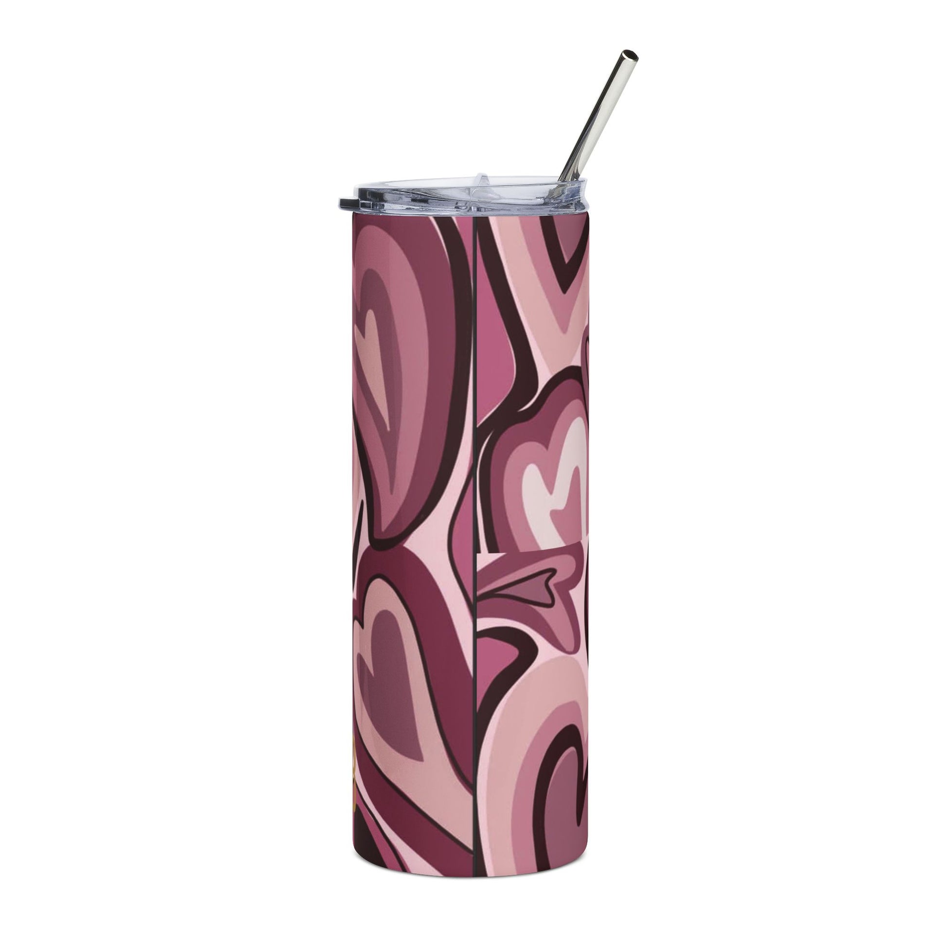 Personalize Initial Retro Hearts Stainless Steel Tumbler, 20oz